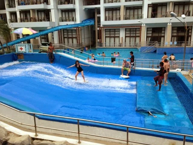 A wave pool. A wave runner. A giant pool slide. A dancing fountain. All at the center of rooms that overlooked this fun filled water park. I was really shocked to find these splashing attractions in the heart of Boracay.